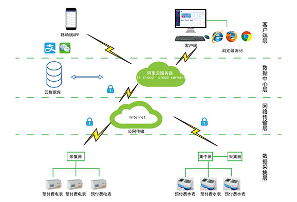 對(duì)于分布不同省、地市或同地市不同區(qū)域的連鎖商業(yè)、集團(tuán)、百貨、門(mén)店、物業(yè)、院校等業(yè)務(wù)分散,要求集中管理、線上支付,低額提醒、欠費(fèi)告警。但常規(guī)的本地插卡付費(fèi)、本地預(yù)付費(fèi)并不能完全滿足客戶管理需求,預(yù)付費(fèi)云平臺(tái)應(yīng)運(yùn)而生。AcrelCloud-3200水電預(yù)付費(fèi)云平臺(tái)無(wú)縫集成商業(yè)、物業(yè)公司、集團(tuán)企業(yè)、院校等分散布置的安科瑞DDSY/ADF系列電子式預(yù)付費(fèi)電能表、閥控智能水表等,提供微信、支付寶、銀聯(lián)等可選的在線支付方式,大大方便了用戶充值、圈存,提供預(yù)警和充值、退費(fèi)、電能消耗等記錄查詢,方便用戶和管理方的數(shù)據(jù)統(tǒng)計(jì)和財(cái)務(wù)分析,提供先交費(fèi)后使用的管控機(jī)制,大大降低了管理部門(mén)的收費(fèi)成本。